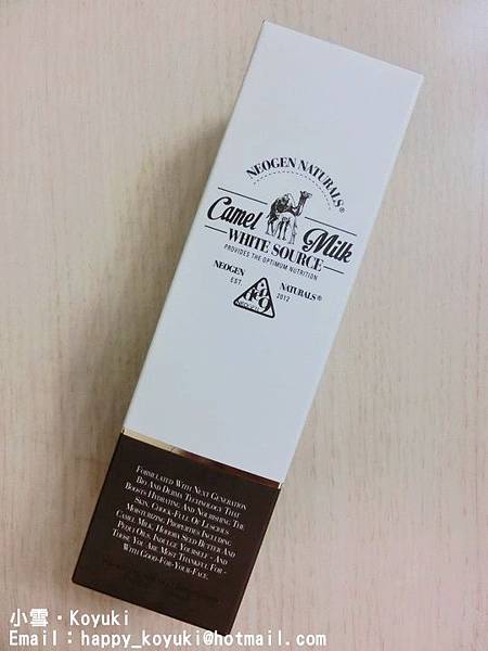 這瓶駱駝奶媃白滋養乳液的包裝,貫徹NEOGEN的作風;
